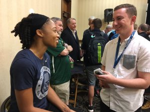I was a broadcaster and the play-by-play voice of Oregon soccer for the campus radio station, KWVA; a host and panelist on talk shows, as well as a producer for games and talk shows. That started in my very first term of college when I was put on the final three soccer broadcasts to do analysis after the sports director learned of my experience in soccer. During my spring term of freshman year, I decided to apply to the independent student-run newspaper, the Daily Emerald, where I’m an associate sports editor and reporter as well as a podcast